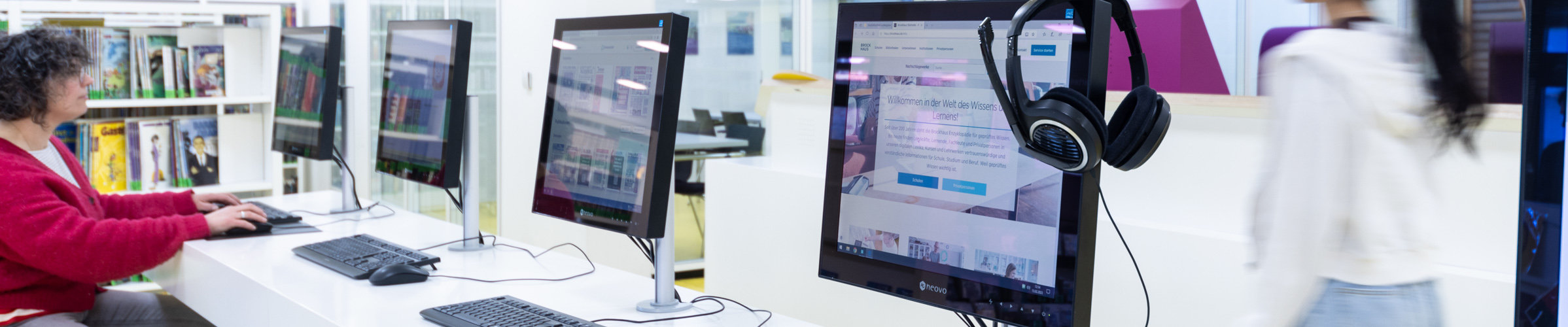 Online-Lernplattform für Schüler*innen von der ersten Klasse bis zum Abitur. Einfach mit Bibliotheksausweis Zugangscode in der Stadtbibliothek an der Auskunft auf Ebene 2 oder den Zweigstellen Schlösslesfeld und West abholen und loslernen!